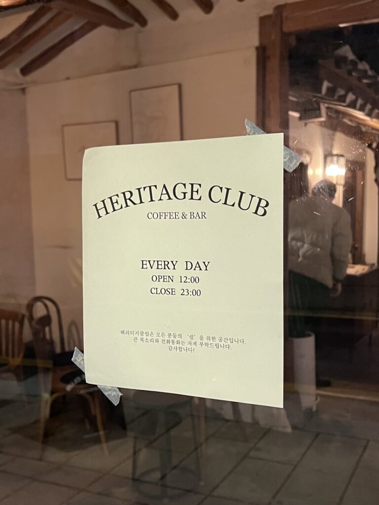 韓国の伝統家屋である韓家が立ち並ぶ益善洞にあるカフェ&バー『Heritage Club(헤리티지클럽)』